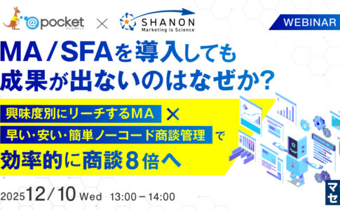 オンラインセミナー MA/SFAを導入しても成果が出ないのはなぜか?〜「興味度別にリーチするMA」×「早い・安い・簡単ノーコード商談管理」で効率的に商談8倍へ〜 2025.11.20 開催日: 2025年12月10日(水)13時~