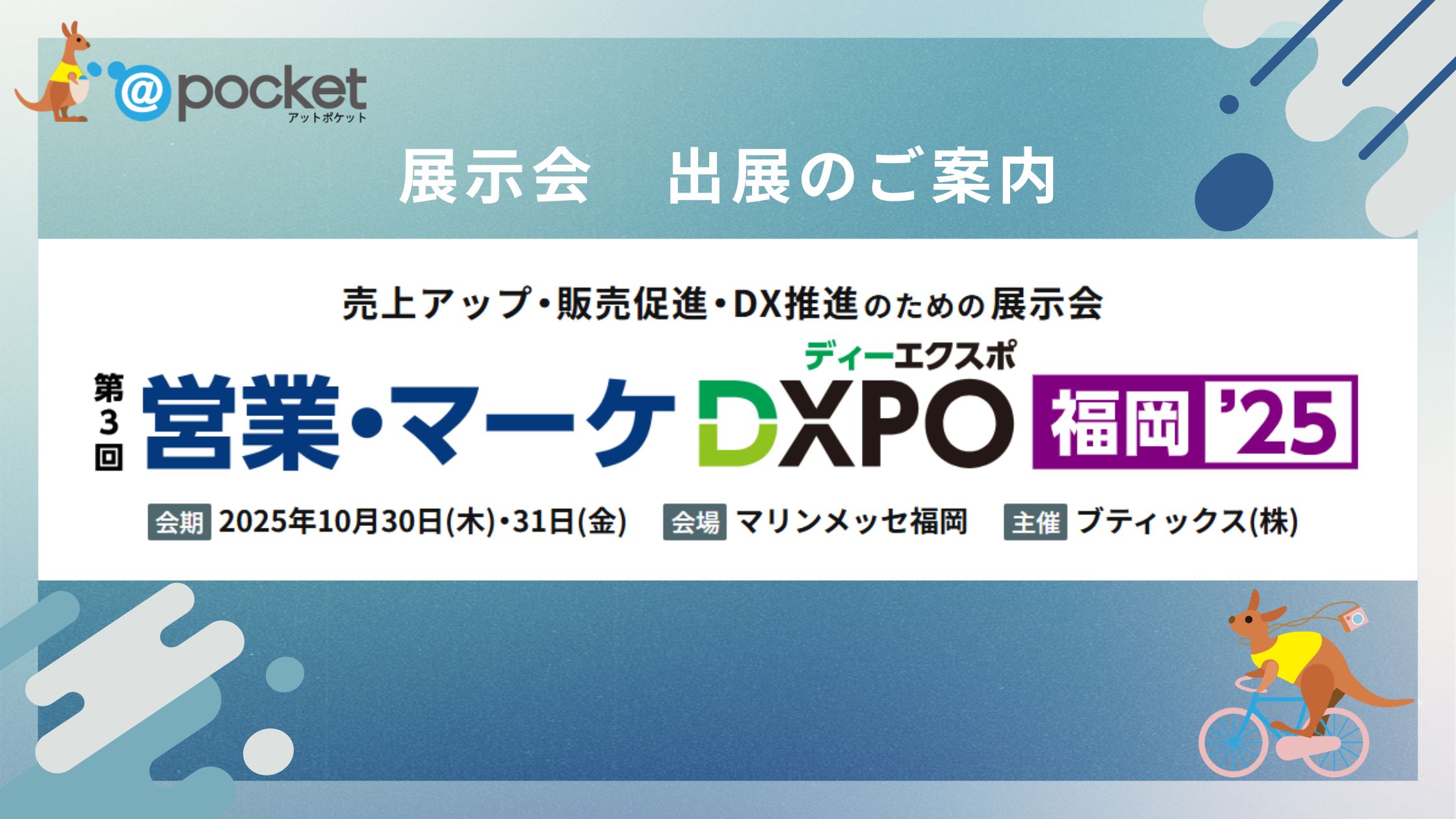 ノーコードツール@pocketは、10月30日(木)、31日(金)に、マリンメッセ福岡 A館にて開催される「営業・マーケDXPO 福岡’25」に出展いたします。