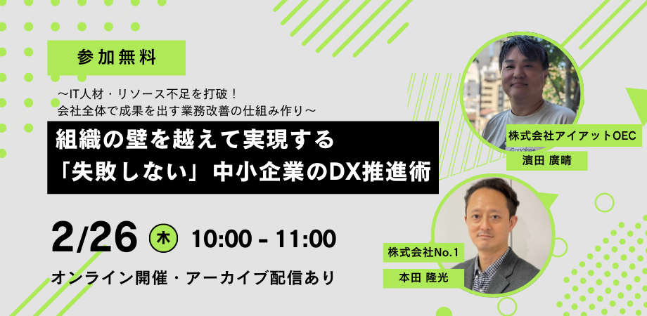 第1部(アイアットOECセッション)では、専門知識がなくても業務をデジタル化できるノーコードツールの紹介を通じ、経営と現場の双方がメリットを実感できる改善手法を公開します。