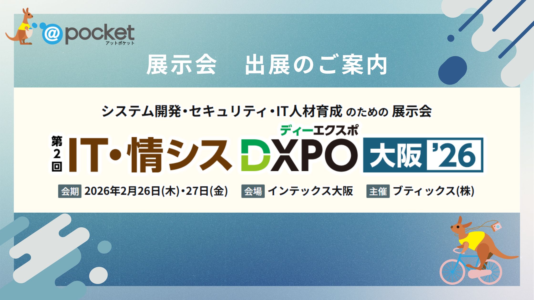 ノーコードツール@pocketは、2月26日(木)、27日(金)に、インテックス大阪にて開催される「IT・情シスDXPO 大阪’26」に出展いたします。