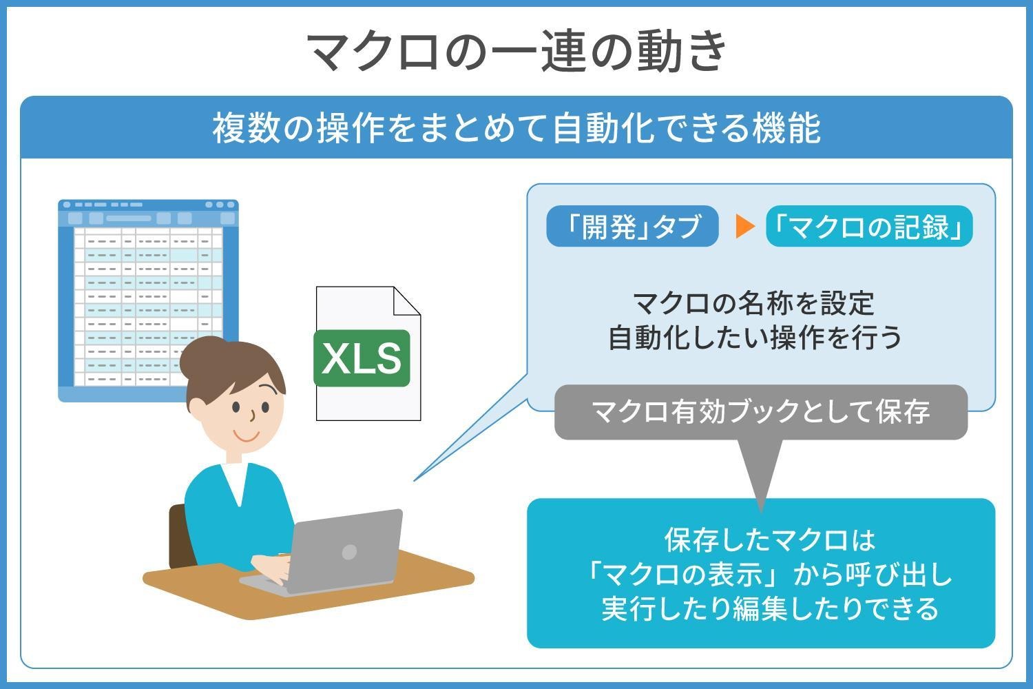 マクロとは複数の操作をまとめて自動化できる機能です。